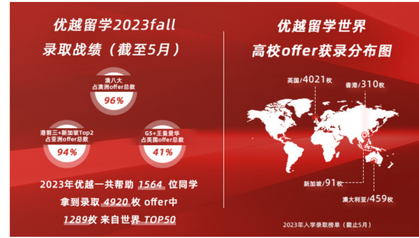 以上是【出國留學中介費用需要多少?優越教育怎么樣?】相關的全部內容,查看更多【出國留學中介費用 】相關資訊可前往【優越留學】首頁!詳細申請規劃及方案定制請預約優越留學顧問為你一對一解答!