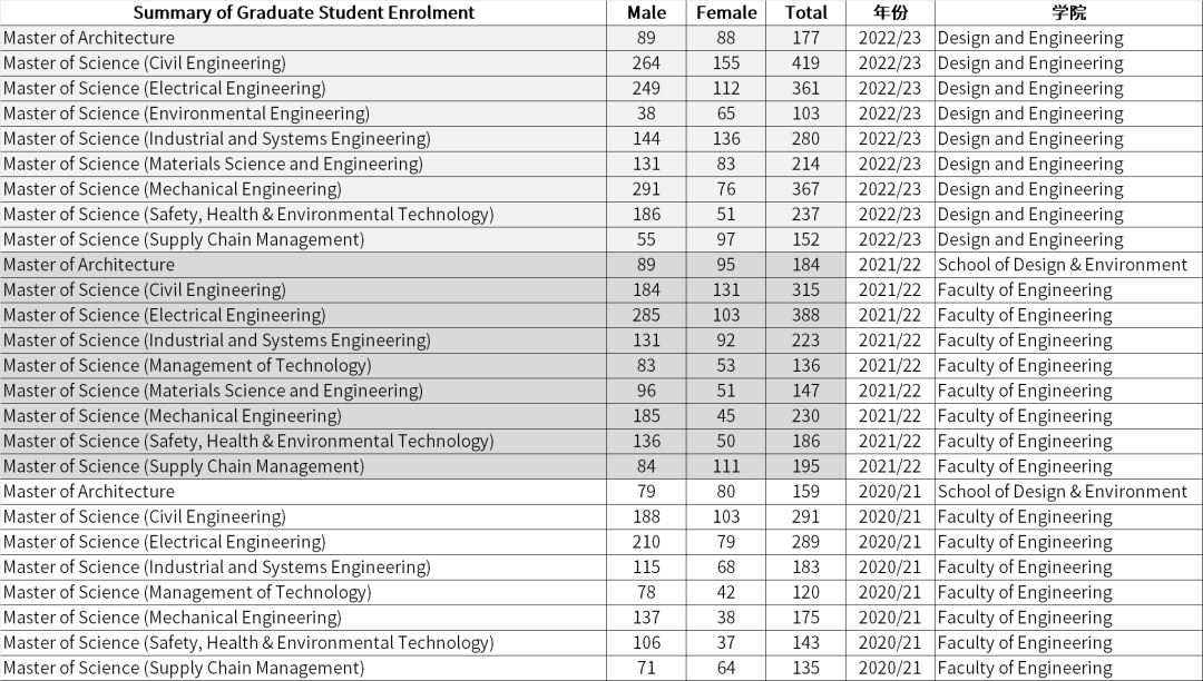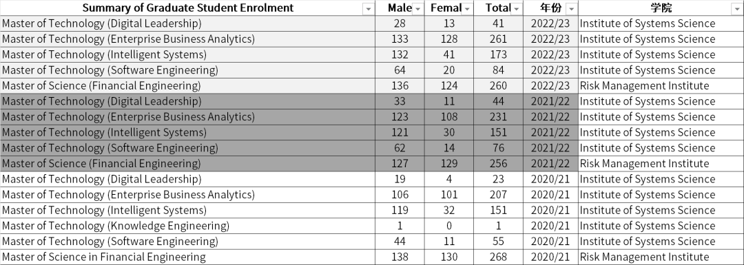 小編整理了新加坡國立大學各學院近3年來的授課型研究生相關數據,為即將在2024年秋季申請新加坡國立大學的小伙伴們提供一些參考方向。