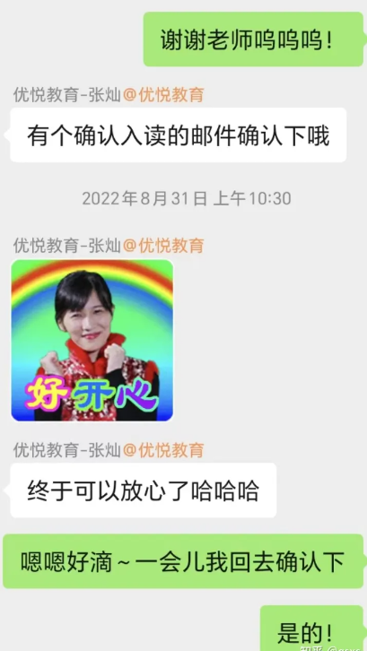 學生口碑:盡管優越留學知名度不高,但通過我的父親的朋友的孩子成功拿到UCL的offer,我對他們產生了興趣。顧問老師非常老練,在分析院校和專業方面表現出色,給出的申請方案也很合理,并且尊重我的個人意愿。