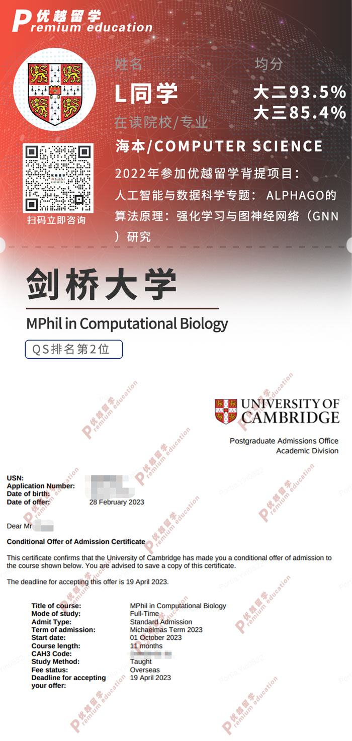 錄取專業(yè):MPhil in Computational Biology