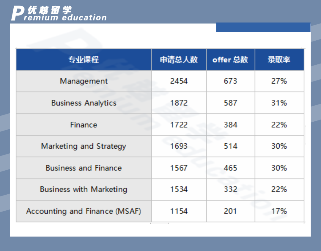 華威大學(xué)商學(xué)院競(jìng)爭(zhēng)非常激烈,申請(qǐng)人數(shù)最多,主要集中在以下7個(gè)專業(yè):
