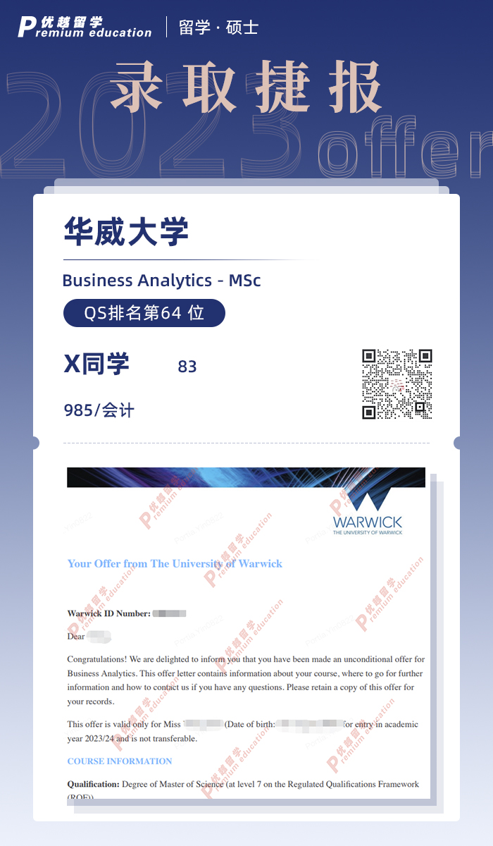 PS:除了華威大學(xué)官方釋出的錄取數(shù)據(jù),優(yōu)越留學(xué)也統(tǒng)計(jì)了23fall華威錄取案例庫,總結(jié)了不同學(xué)科專業(yè)申請(qǐng)背景。這兩份材料是24fall申請(qǐng)的重磅參考信息,感興趣的同學(xué)可以掃碼聯(lián)系小助手微信領(lǐng)取!