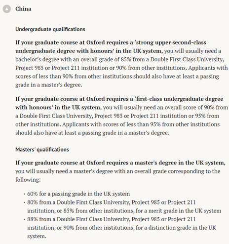 本科畢業生:要求至少達到英國2:1榮譽學位同等學歷,985/211同學均分至少85%,其他雙非同學均分90%以上。
