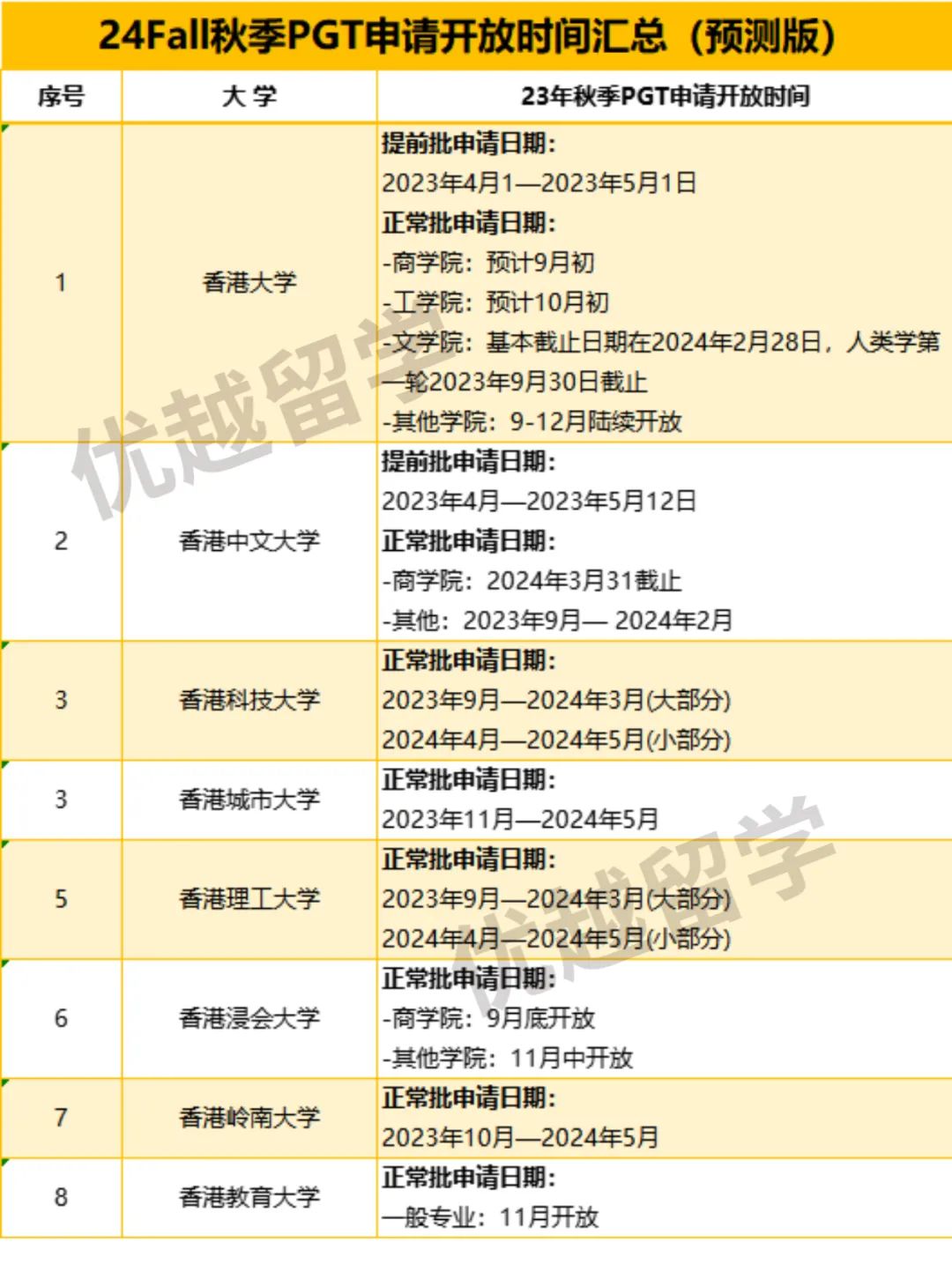 篇幅原因,港新院校的網申時間&預測,優越君也特別做了一張表格,建議大家馬一下??