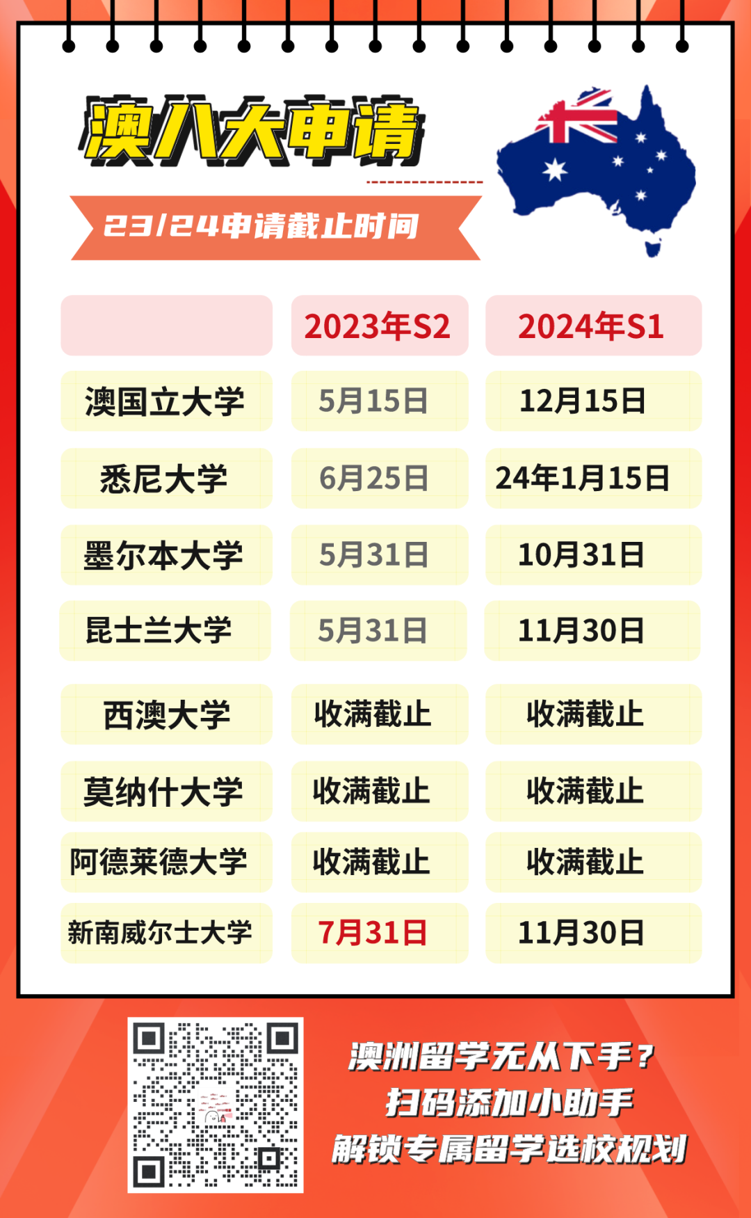 澳八大春季入學的申請截止時間其實充裕,但還是建議同學們提早開始規劃最適合你的澳洲留學方案!
