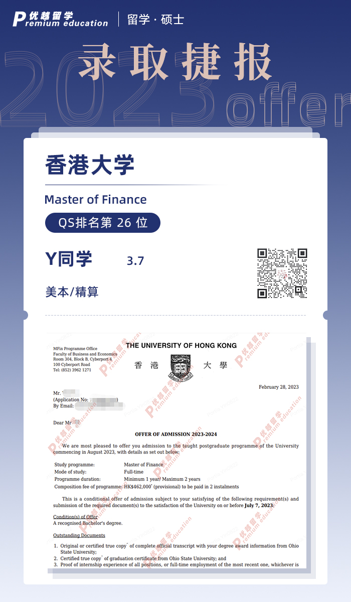 錄取院校:香港大學