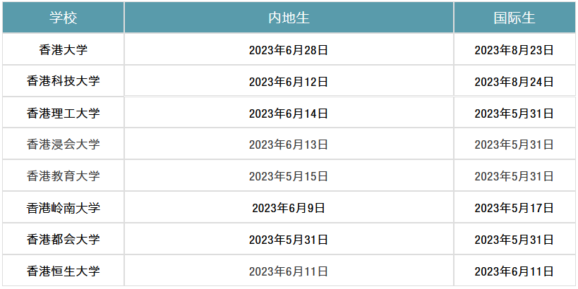 目前內(nèi)地高考生申報(bào)時(shí)間已經(jīng)截止,國際生部分學(xué)校還在招收中,例如香港大學(xué)、香港科技大學(xué)。具體報(bào)名截止日期如下: