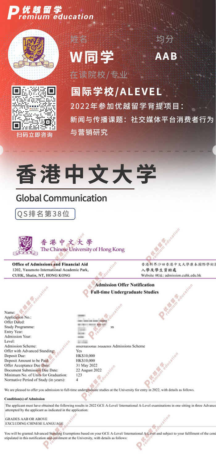 在這個(gè)充滿機(jī)遇與挑戰(zhàn)的國際化時(shí)代,來自一位優(yōu)秀的國際學(xué)校學(xué)生,他以杰出的學(xué)術(shù)成績(jī)成功進(jìn)入香港中文大學(xué)的Global Communication專業(yè)。