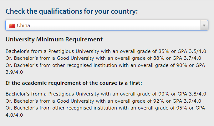 ?本科學(xué)校在認(rèn)可名單上,根據(jù)list不同等級分?jǐn)?shù)要求不同