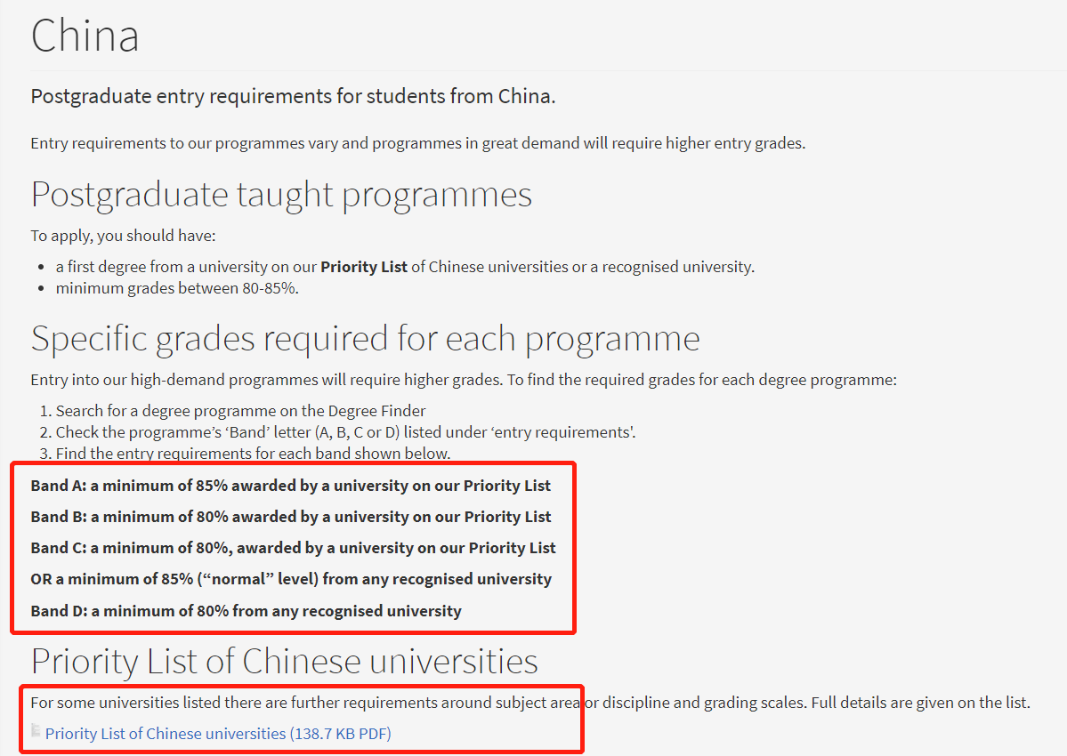 這兩所大學在近2兩年來明確了優先認可名單,申請人可通過官網確認自己是否滿足院校名單要求,以及最低錄取分數要求。