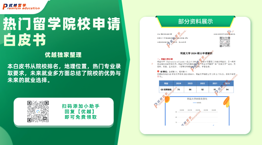 當前,隨著英國院校已經開始接受24fall英國碩士研究生申請,許多同學或許還在猶豫當中。但請不必擔心,優越君考慮到了這一點,為大家準備了一份熱門留學院校申請白皮書,為你提供全面的參考指南!該白皮書涵蓋了院校排名、地理位置、熱門專業錄取要求以及未來就業等多個方面,為你總結了各院校的優勢和未來就業前景。