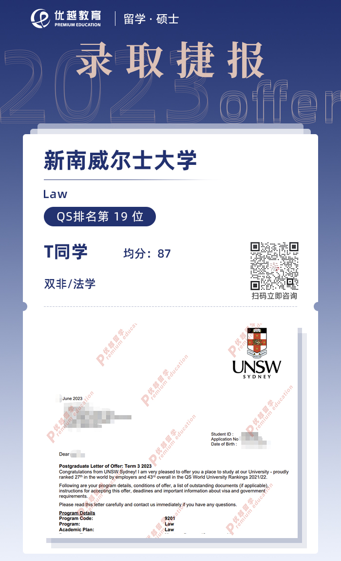 錄取院校:新南威爾士大學