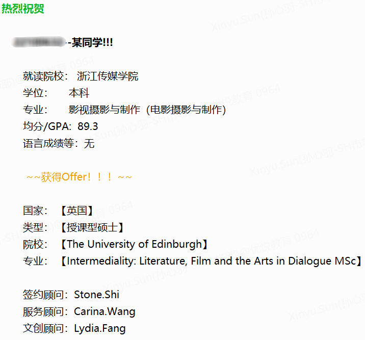 錄取院校:The University of Edinburgh