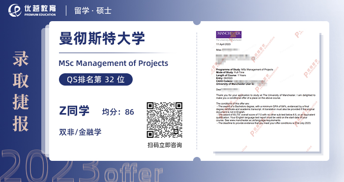 Z同學是一位來自雙非院校的金融學專業學生,他希望申請英國曼徹斯特大學的MSc Management of Projects專業,但考慮到自己的背景較一般,他轉向優越留學中介機構以獲得更好的申請結果。