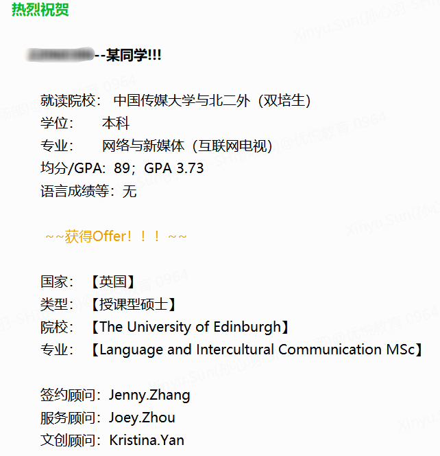 錄取院校:The University of Edinburgh