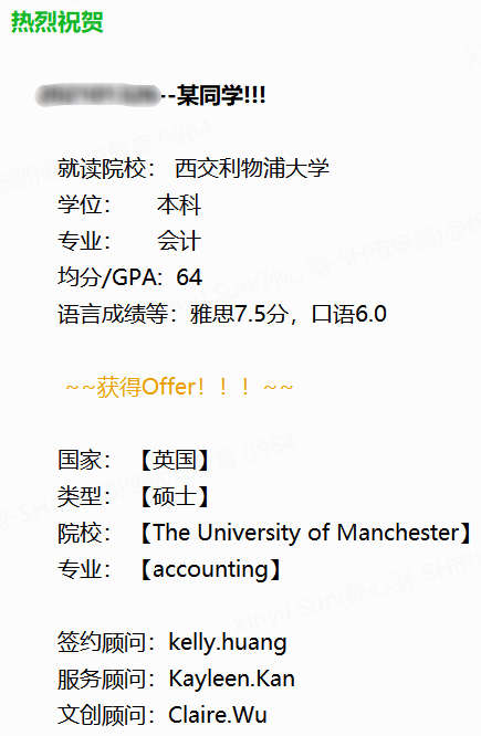 錄取專業:The University of Manchester