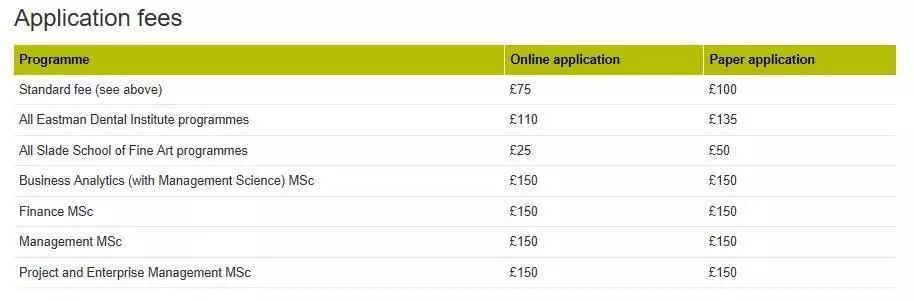 舉例來說,倫敦大學學院(UCL)在2020年的研究生申請中,網上申請需要支付75英鎊的申請費,而紙質申請則需要支付100英鎊的申請費。此外,不同專業的申請費用也有所不同,一些熱門的商科專業的網上申請申請費可能高達150英鎊。