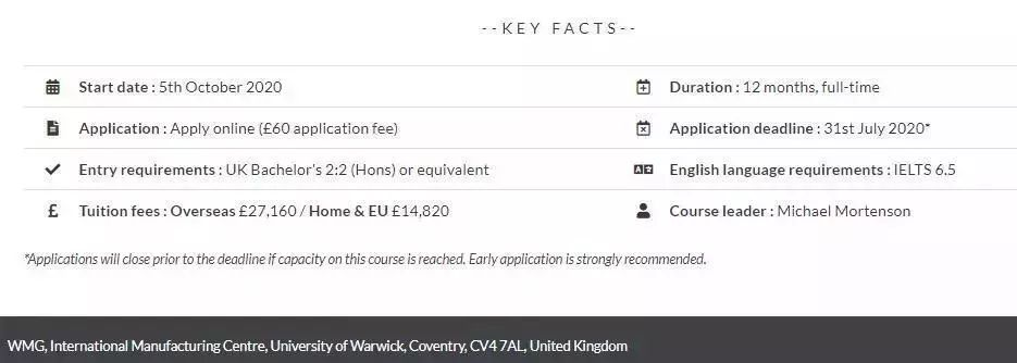 所有課程(除MBA):75磅一年制MBA:150磅(部分專業申請費略有不同)