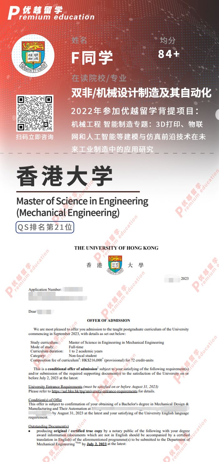對于雙非背景的學生來說,申請香港前三名大學是一個具有挑戰性但充滿機遇的決策。作為一家香港留學專業機構,優越留學擁有多年的申請經驗和專業知識,可以幫助您制定最佳的申請策略,提高錄取機會。優越留學的顧問團隊了解不同大學的錄取政策和要求,可以為您量身定制申請方案,并提供針對性的建議,確保您的申請材料充分展現您的優勢和潛力。最后,無論申請哪所學校,優越君都希望同學們可以順利拿到自己的offer!