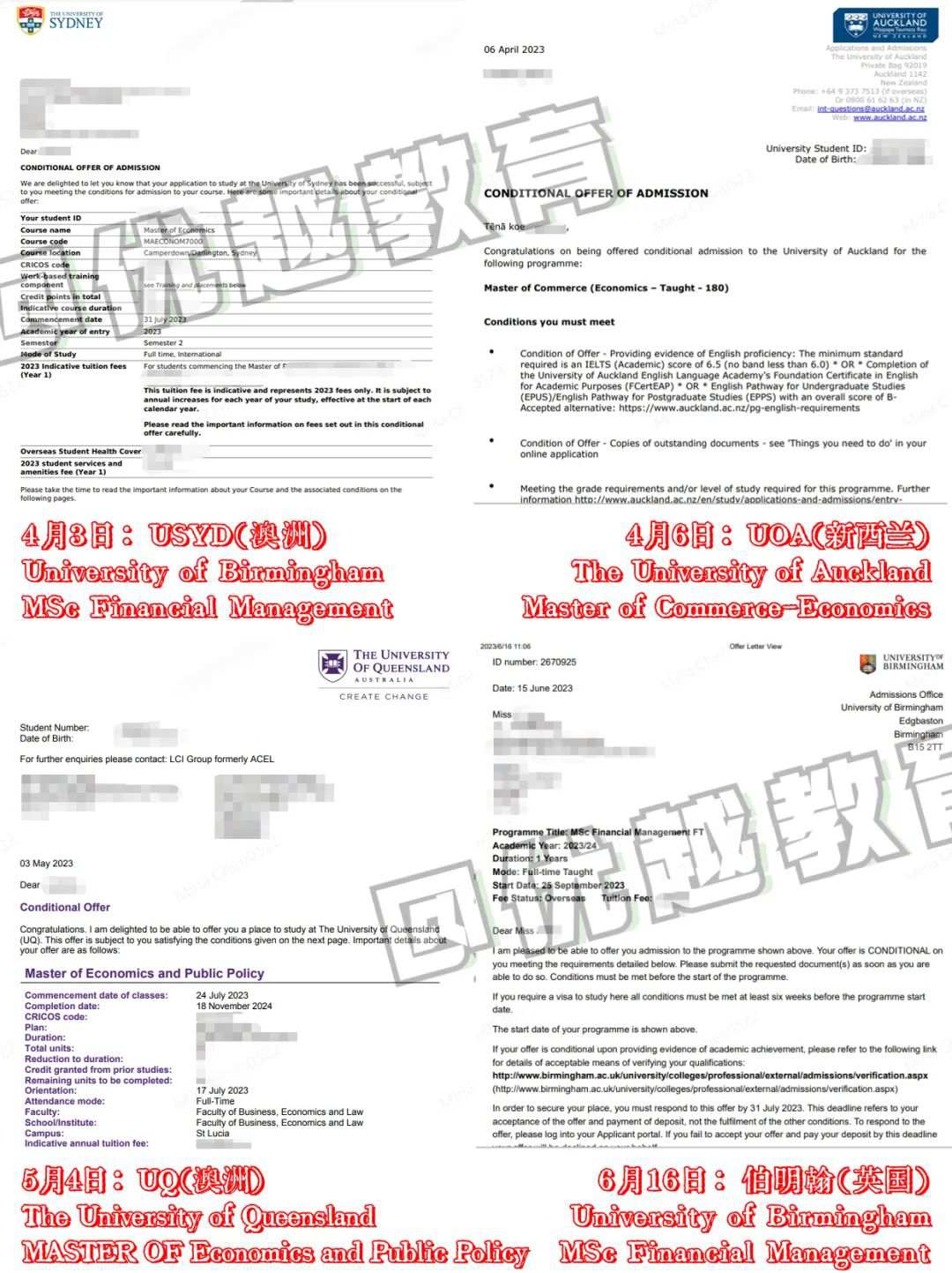 拿到offer:悉尼大學經濟學(確認就讀)、昆士蘭大學、奧克蘭大學、伯明翰大學。