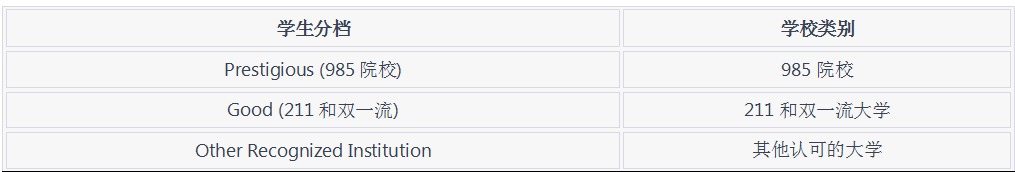 劍橋大學將中國大陸學生分為三檔: