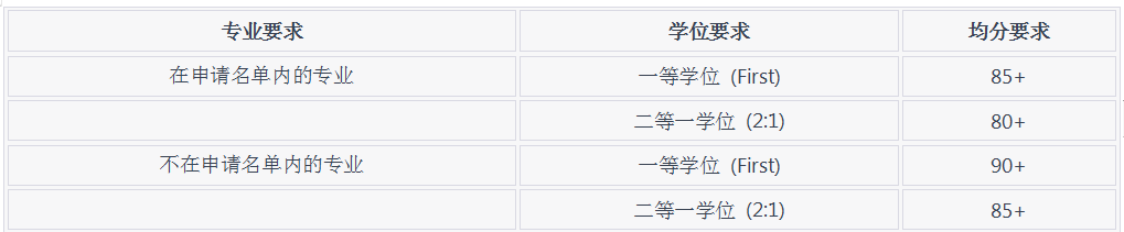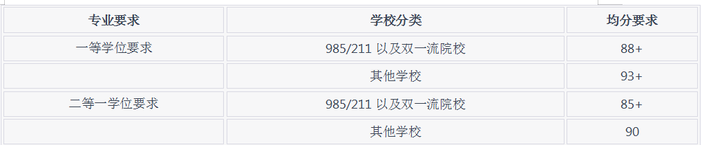 1.專業要求為一等學位