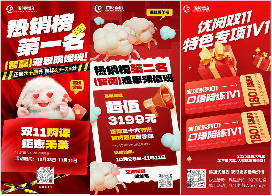 而在所有的留學(xué)類考試中,熱銷榜前三分別是雅思智贏線上晚班課、雅思智閱預(yù)修班、特色專項(xiàng)1V1(口語 & 寫作),并且它們統(tǒng)統(tǒng)參與雙十一課程活動(dòng)!