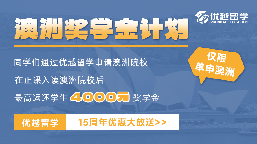 即日起凡是在特定期間通過優越留學申請澳洲院校,在正式入讀后,優越留學將提供學生一筆獎學金,最高達4000元!(僅限單申澳洲碩士項目)