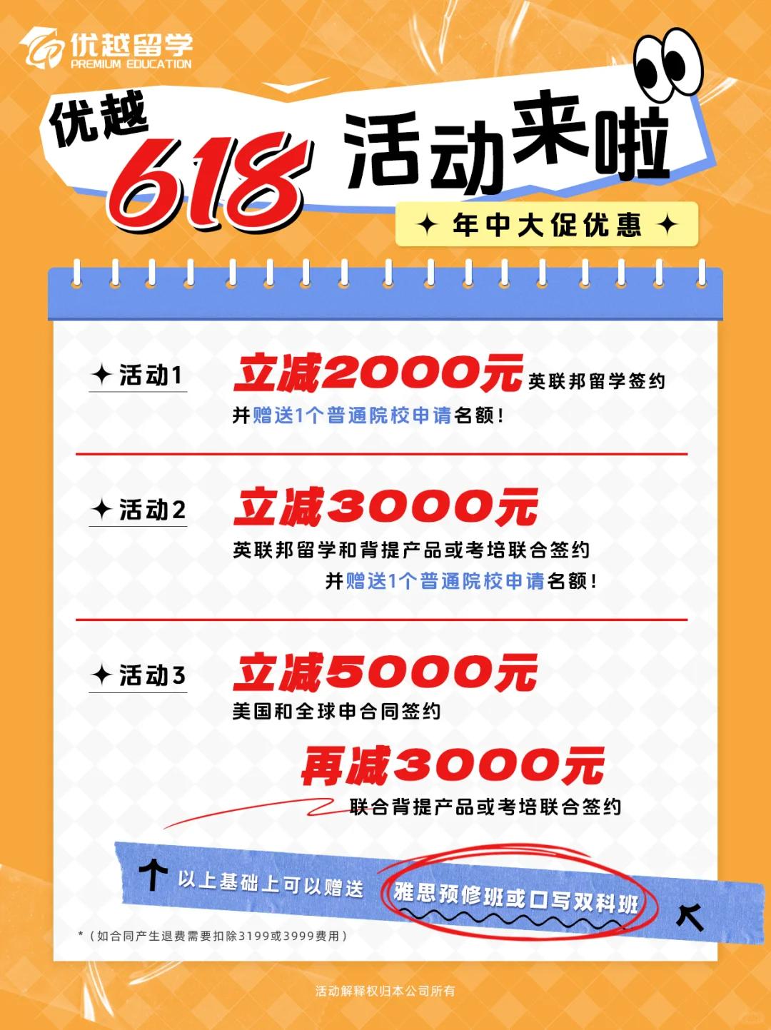 即日起凡是在優越留學簽約辦理預科留學(本科預科或碩士預科),原價12000元的留學產品限時特惠8000元,額外贈送價值4000元的雅思預修班!