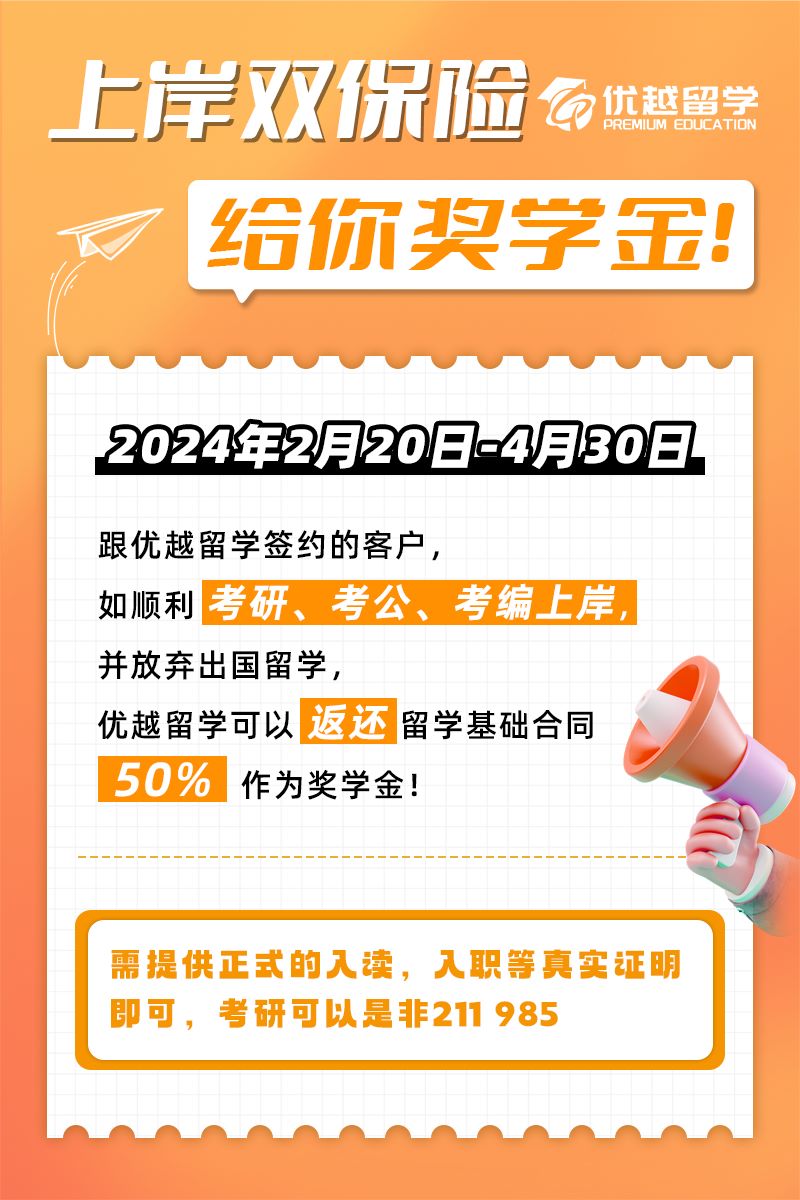 其實,世界上可以上的岸很多,考研只是其中渺小的一個,抓住當下才是最重要的。往年也會有很多考研失利的同學找到優越,啟動Plan B:出國留學讀研。如果你下定決定,立即著手準備,24Fall入學也是完全趕得上的。