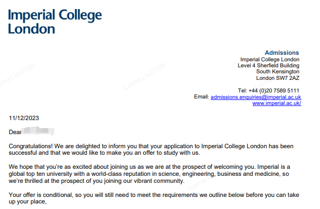 23Fall學生Lee:“學弟學妹們沉住氣,有些院校它可能就是想再等等。我是22年11月遞交的申請,一直到去年2月都是0offer,都以為沒戲了。3月第一周,IC的offer就來了。”