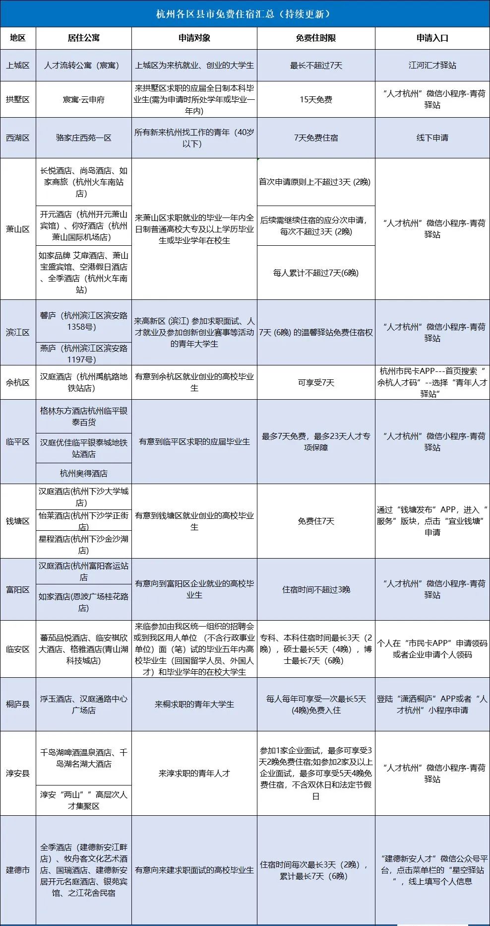附杭州各區(qū)縣免費人才公寓(留學(xué)生可申)
