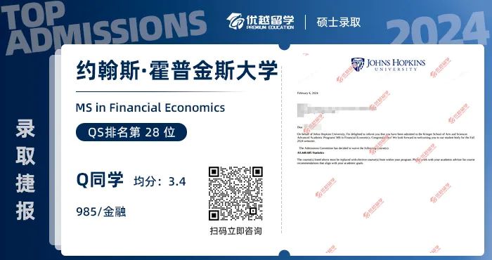 Q學姐是在去年初來到優越的,籌謀了近一年的美國碩士留學,最終上岸約翰斯·霍普金斯大學金融經濟學專業。接下來,我們就一起看看,Q學姐是如何一步步實現自己的目標的~