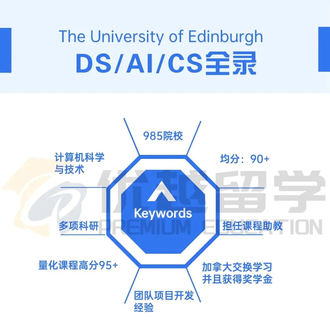 該學生的經歷是非常豐富的,除了交換學習的經歷以外,有至少4段以上的科研經歷以及團隊開發軟件的經歷,并且該同學的成績是非常亮眼的,總均分90+,量化課程和大部分核心課程分數基本都在95分以上。拿到了愛大的計算機所有方向的錄取。