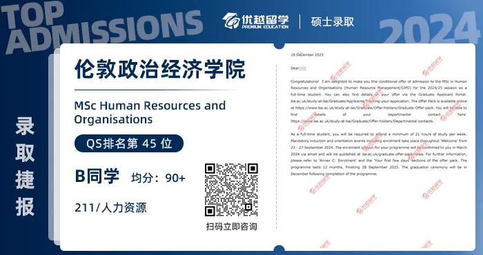 211均分90+學長,拿到LSE人力資源管理碩士offer!