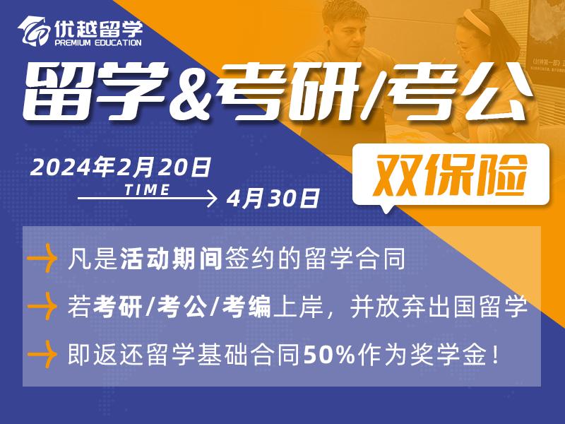 2024年2月20日-4月30日跟優(yōu)越留學簽約的客戶,如當年順利考研、考公、考編上岸,并放棄出國留學,優(yōu)越留學可以給予6000-16000元不等的獎勵金!(具體金額與簽約套餐掛鉤)