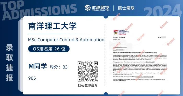 M學(xué)長(zhǎng)是去年4月來(lái)到優(yōu)越的,碩士研究生留學(xué)申請(qǐng)歷時(shí)6個(gè)月,最終上岸了南洋理工大學(xué)電腦控制與自動(dòng)化碩士項(xiàng)目。接下來(lái),就跟優(yōu)越君一起看看,M學(xué)長(zhǎng)的申請(qǐng)歷程~