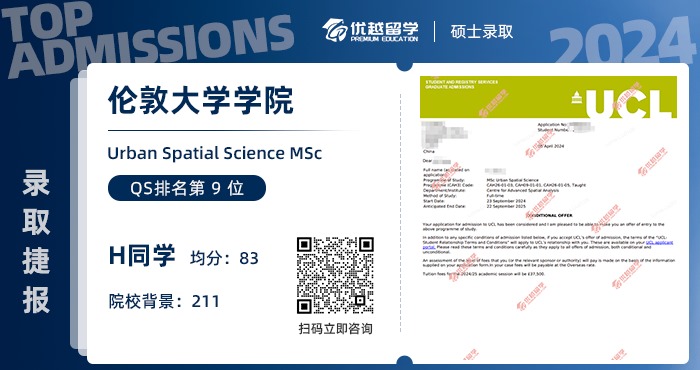 H學姐是去年9月來到優越的,用時2個月的時間,最終入讀UCL城市空間科學碩士項目。接下來,就跟優越君一起看看,H學姐的碩士留學申請求學之路~