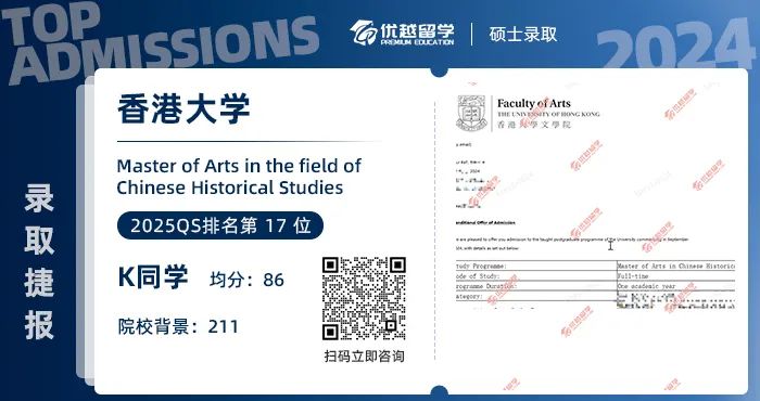 【香港留學(xué)】211均分84學(xué)姐,拿下港大中國歷史研究文學(xué)碩士offer!