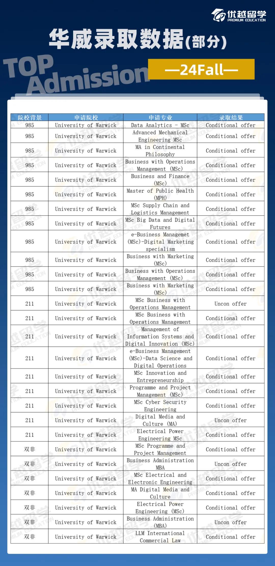 華威大學(xué)絕對(duì)是“陸本友好”的佼佼者。根據(jù)優(yōu)越多年的申請(qǐng)經(jīng)驗(yàn),華威WMG學(xué)院更偏愛985的學(xué)生,然后是海本、211等。甚至出現(xiàn)英本一等被拒,而985均分平平卻被錄取的情況。