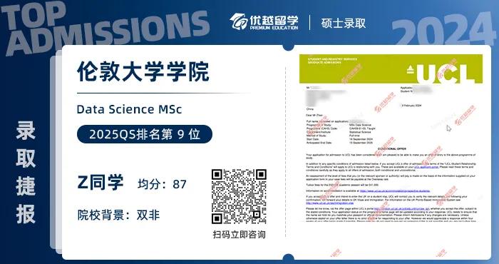 以上是【本期offer榜單:【碩士案例】雙非大數據專業,成功逆襲世界TOP10倫敦大學學院UCL! 】相關的全部內容,查看更多【offer榜單】、【名校案例】相關資訊可前往【優越留學】首頁!世界名校申請,找優越留學!選校定校、申請規劃、文書寫作、背景提升、方案定制一套搞定!點擊【在線咨詢】,優越留學顧問24h在線為您一對一解答!