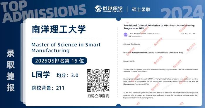 【碩士案例】均分80申請新加坡,上岸南洋理工大學(xué)NTU智能制造碩士!