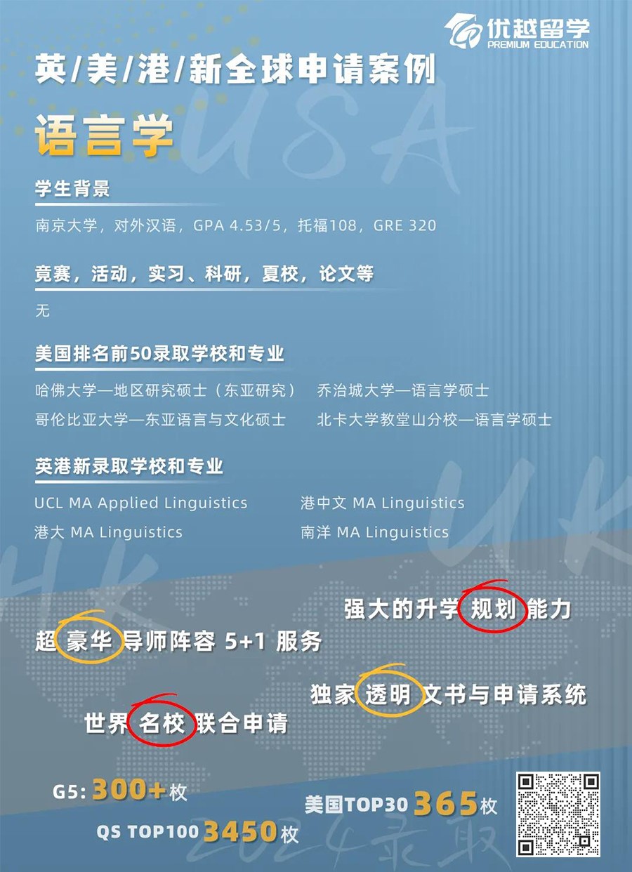 【優(yōu)越君提示】咨詢留學(xué)申請,可以點(diǎn)擊【在線咨詢】直接對話老師提需求,也可直接撥打電話預(yù)約專業(yè)老師:4006661553