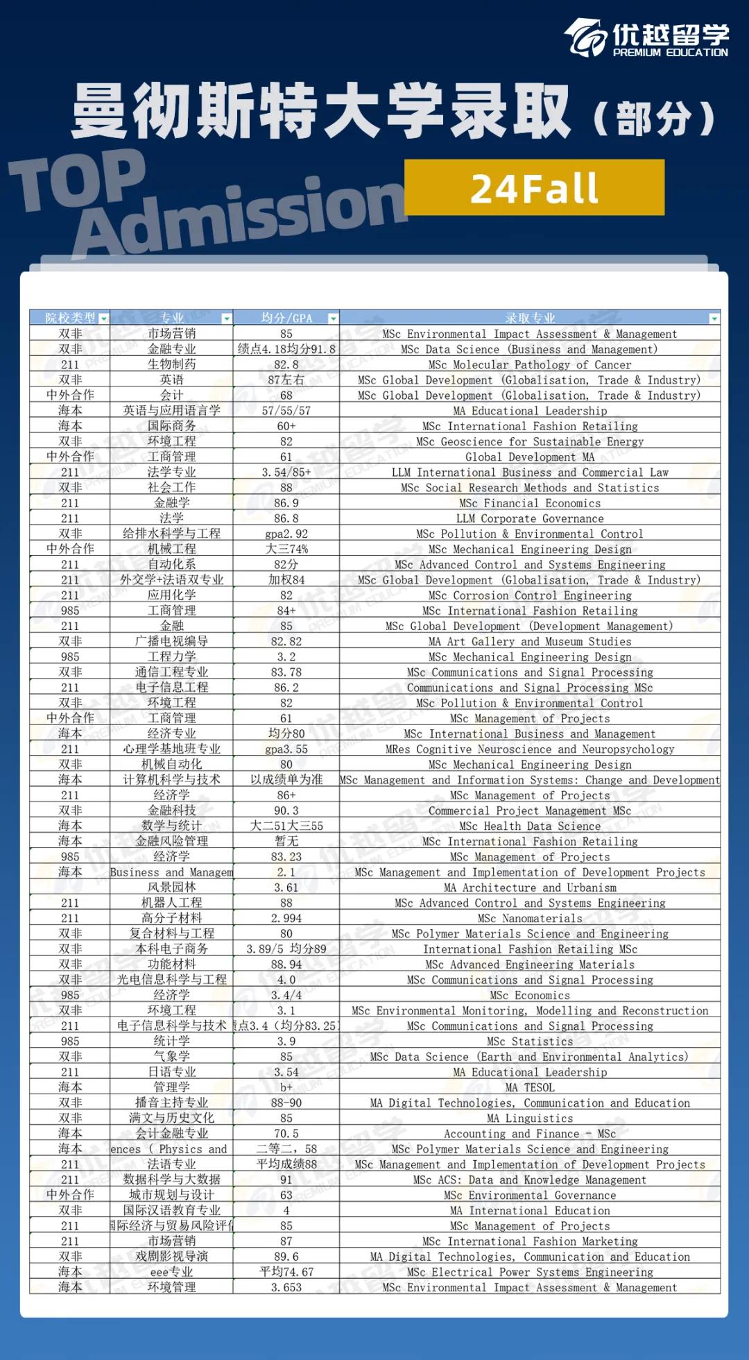 以上是【【英國(guó)留學(xué)】曼大25Fall更新要求!院校list、均分要求有哪些調(diào)整? 】相關(guān)的全部?jī)?nèi)容,查看更多【 英國(guó)研究生留學(xué)】相關(guān)資訊可前往【優(yōu)越留學(xué)】首頁(yè)!詳細(xì)申請(qǐng)規(guī)劃及方案定制請(qǐng)預(yù)約優(yōu)越留學(xué)顧問(wèn)為你一對(duì)一解答!