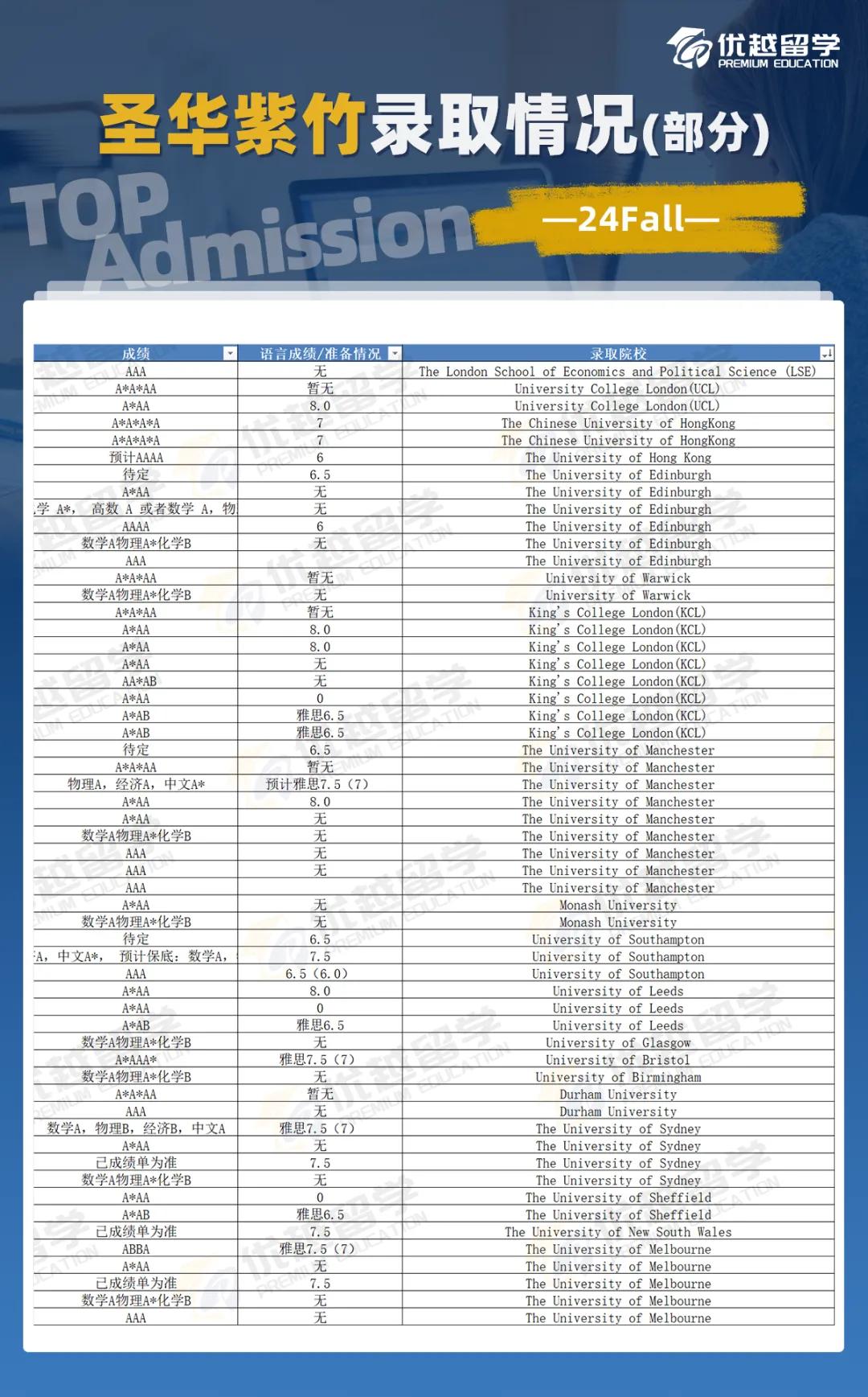 以上是【【本科留學】國際高中生必看!圣華紫竹2024屆本科錄取盤點與分析】相關的全部內容,查看更多【 本科留學申請】相關資訊可前往【優越留學】首頁!詳細申請規劃及方案定制請預約優越留學顧問為你一對一解答!