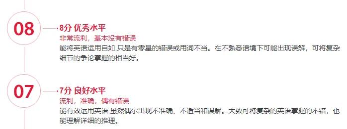 雅思考試采用國際認可的9分制評分系統(tǒng),每個雅思總分及聽說讀寫各單項分數(shù)均有對應(yīng)的語言能力描述,精準體現(xiàn)真實語言水平。