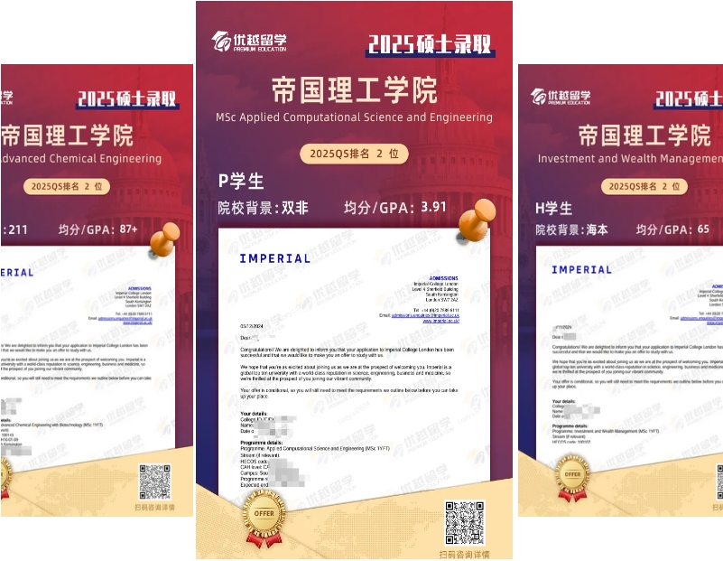 以上是【【碩士留學】2025fall開門迎接G5offer:IC、LSE、UCL開始搶人!】相關的全部內容,查看更多【英國碩士留學】相關資訊可前往【優越留學】首頁!詳細申請規劃及方案定制請預約優越留學顧問為你一對一解答!