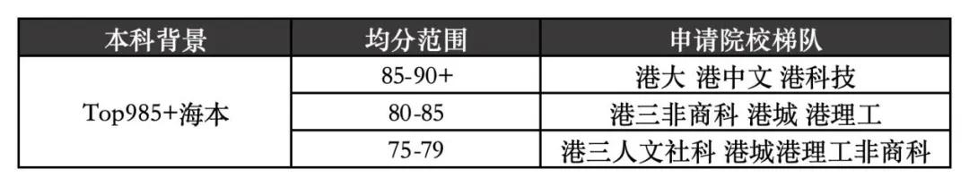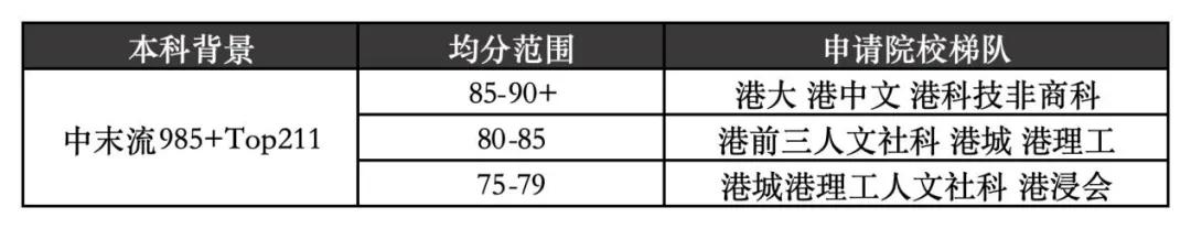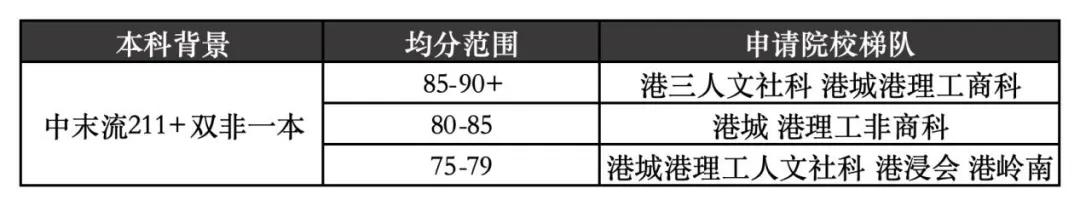 這個背景的學生,在申請港校時候同樣也需要根據成績和所選專業做好層次劃分。