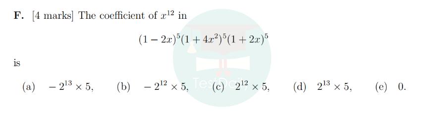 這道題考查的就是代數(shù)和多項(xiàng)式的知識(shí),解題的時(shí)候可以利用平方差公式和二項(xiàng)式定理。先把 (1 - 2x)(1 + 2x) 化為 (1 - 4x²) ,再和 (1 + 4x²) 一起化為 (1 - 16x?) ,得到 (1 - 16x?)? ,然后用二項(xiàng)式定理求出 x¹² 的系數(shù),最終答案是 a。通過(guò)這道題,大家就能發(fā)現(xiàn),MAT 考試考查的知識(shí)點(diǎn)雖然是學(xué)過(guò)的,但需要靈活運(yùn)用。