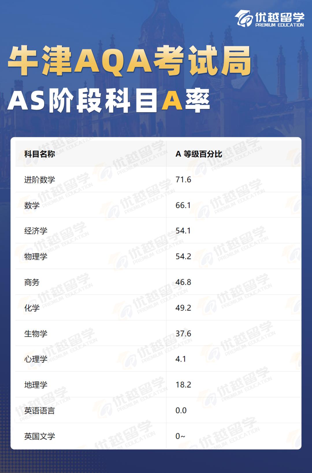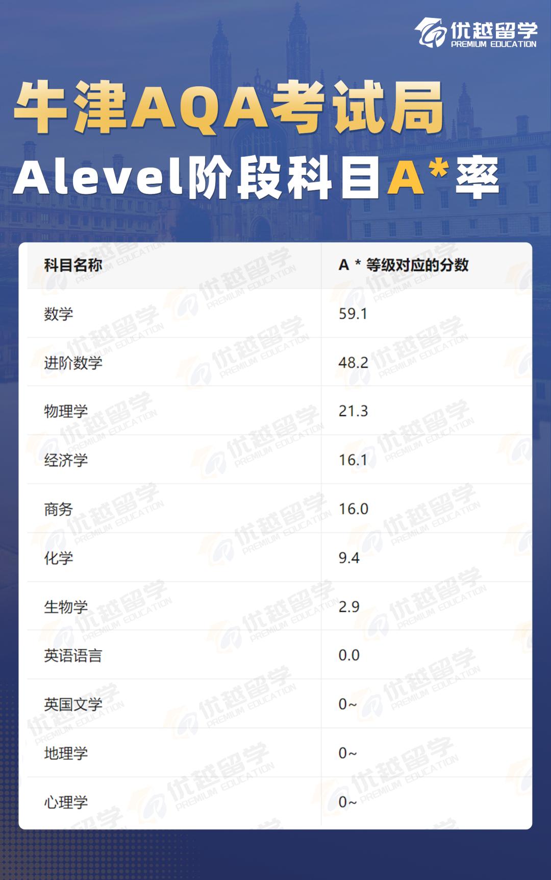 以上是【【牛劍筆試】最新!一月大考牛津AQA出分!這些科目A*率最高!】相關的全部內容,查看更多【牛津留學申請】相關資訊可前往【優越留學】首頁!詳細申請規劃及方案定制請預約優越留學顧問為你一對一解答!
